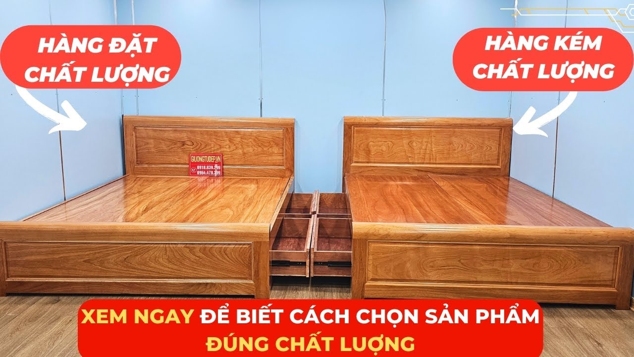 Tên sản phẩm: Giường ngủ gỗ đỏ có ngăn kéo - GĐ98