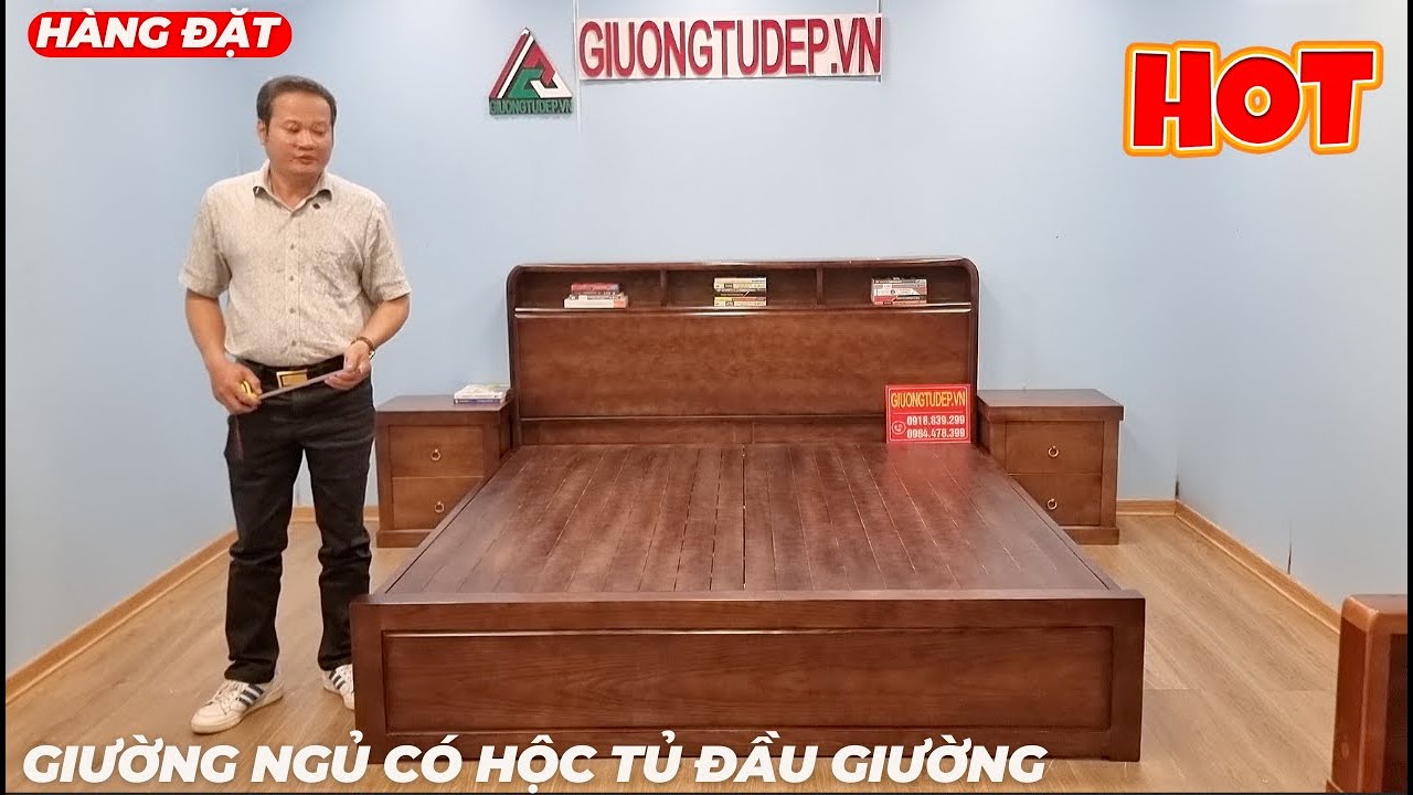 Tên sản phẩm: Giường Ngủ Đa Năng Màu Gỗ Óc Chó Có Tủ Đầu Giường