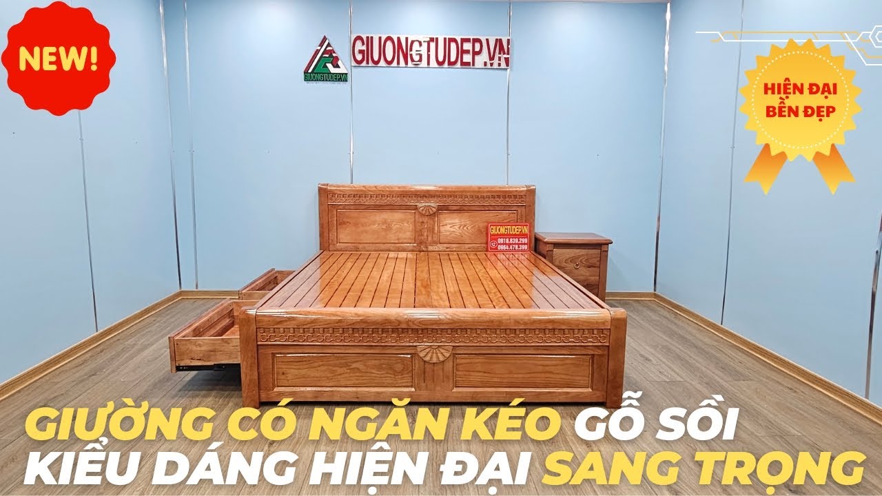 Giường ngủ gỗ sồi có ngăn kéo nâu cánh gián GS195